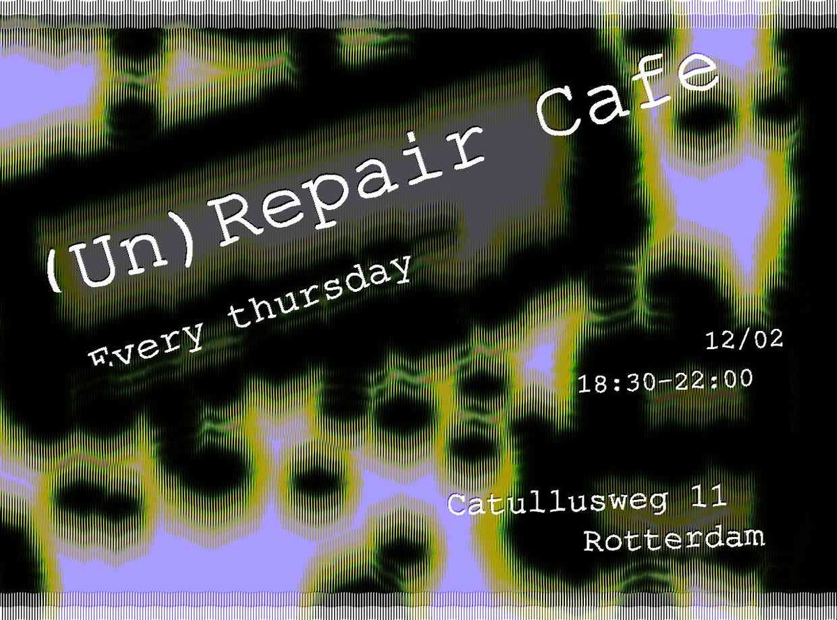 Do you dig trough trash only to find treasure? Are you interested in building servers? Do you take the shop out of photoshop? Is a printer jam your kind of jam? Come hang at the (un)repair cafe! We meet every Thursday at Catullusweg 11, Rotterdam. No need to sign up, but if you have anything specific to repair and you let us know before hand, we can try to get the right parts & tools.